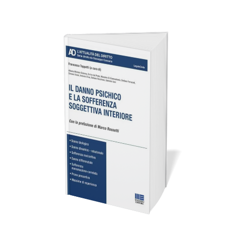 Attraverso l’analisi della dottrina e della giurisprudenza più recente, questo volume ha l’obiettivo di trattare il fenomeno della sofferenza interiore in modo tecnico ed approfondito, guidando il professionista nel panorama risarcitorio, senza il timore di chiedere e di poter ottenere il giusto valore per il dolore interiore, meritevole di ristoro con pari dignità rispetto a quello esteriore e tangibile. L’opera affronta gli aspetti sostanziali e processuali del danno psichico, con particolare attenzione al sistema delle presunzioni e dell’onere di allegazione.