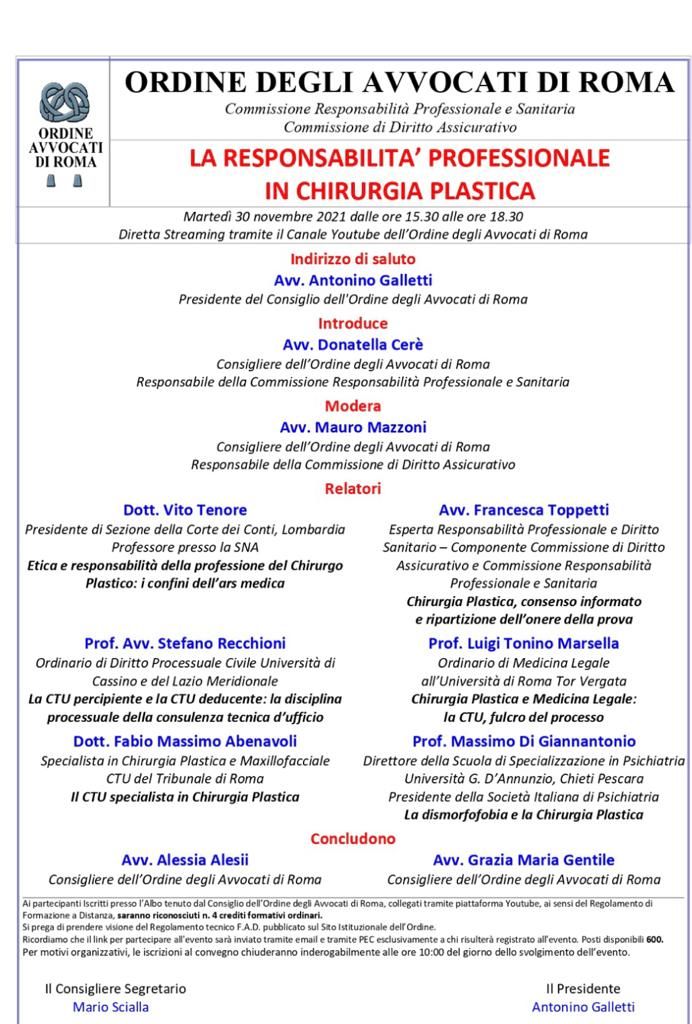 Come relatrice, ha partecipato a numerosi congressi e convegni, affrontando argomenti di rilevante attualità, tra cui il consenso informato, la colpa medica, la lite temeraria, la presunzione di responsabilità, la protezione della privacy e l’intelligenza artificiale nel contesto sanitario.